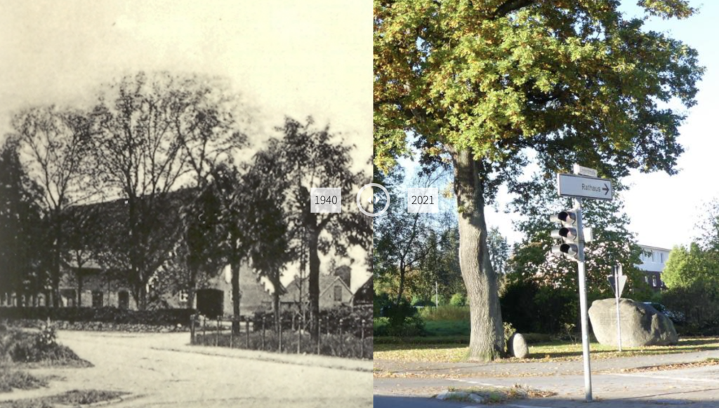 Als qualifizierte Gästeführerin und Kind des Ortes kam die größte Gemeinde Schleswig-Holsteins auf mich zu, um Rundgänge an diesem geschichtsträchtigen Knotenpunkt zu gestalten. Für all diejenigen, die in Henstedt-Ulzburg beheimatet oder zugezogen sind, wird klar sein, dass sich im heutigen Ortsbild kaum noch etwas von der Geschichte der ehemals vier einzelnen Ortschaften zu sehen ist. Schnell war klar, dass ein Rundgang mit historischen Fotos unterstützt werden muss. So entstand bei mir die Idee, mit der App Future History zu arbeiten und somit neben geführten Rundgängen auch selbstgeführte, digitale Gemeinderundgänge zu erstellen.